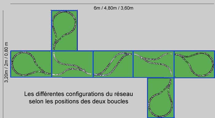 Pour la synchronisation des mouvements la détection du passage des trains est assurée par des cellules photoélectriques. L'alimentation de chaque convoi est assurée par deux transformateurs indépendants en "Cab Contrôl". Du fait de la simplicité de l'automate il existe des contraintes lors de la mise sous tension du dispositif, la situation doit être prédéfinie en fonction du nombre de trains. La structure du réseau est composée de plateaux de 80x120 en médium de 3mm renforcés d'un cadre en bois de 15x20 ce qui les rend légers et facilement transportables. Ces plateaux étant facilement déformables, l'ensemble repose sur une douzaine de tréteaux qui assurent également l'assemblage des modules entre eux. A l'origine le réseau était composé de 3 plateaux auxquels j'en ai ajouté 2 intermédiaires. En plus d'autoriser une certaine variété dans la disposition du circuit qui peut être désormais disposé en I en L ou en Z, ils ont permis la résolution de quelques problèmes d'automatisme. Il n'a cependant pas été facile de trouver une disposition des voies autorisant ces différentes combinaisons. D'autant que sur le marché de l'occasion, si il est relativement facile d'acheter des aiguillages à droite, j'ai rencontré les plus grandes difficultés pour en trouver à gauche. A tel point que j'ai dû en fabriquer intégralement une paire, alors que quelques mois plus tard j'en trouvais sur Internet ! Le point positif est que cela m'a permis d'ajouter ma petite touche personnelle à cette réalisation et d'expérimenter une solution mécanique originale. Charles DROZ